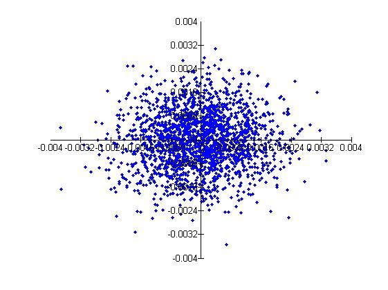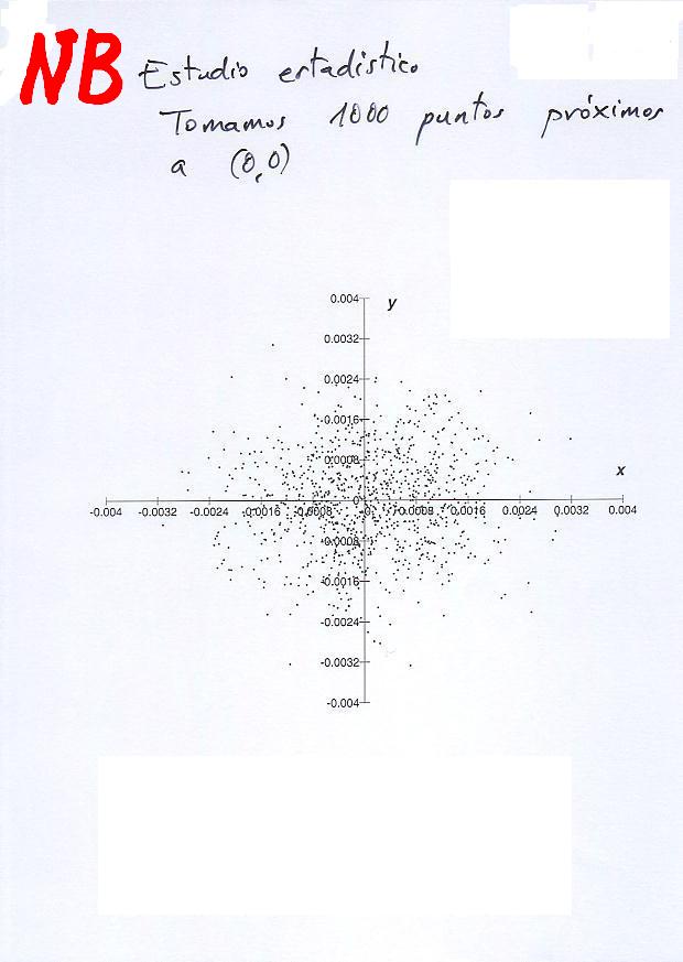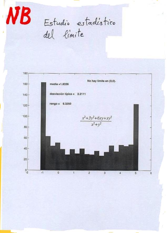 Estudio estadístico del límite con 10.000 puntos elegidos al azar en torno a (0,0).