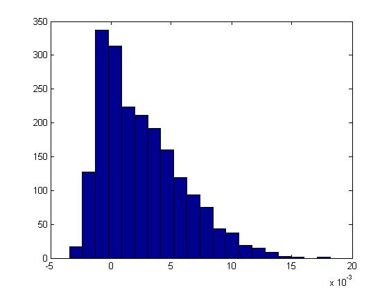 Media = 0,0025; desviación típica = 0,0034; rango = 0,0241.